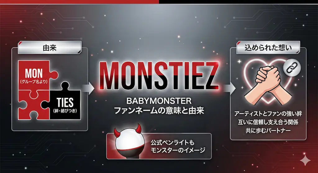 | 語源 | 「MON’S」(BABYMONSTER由来) + 「TIES」(絆) |