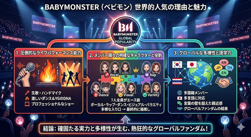なぜこれほどまでにBABYMONSTERが世界中で愛されるのか、その理由を深掘りします。