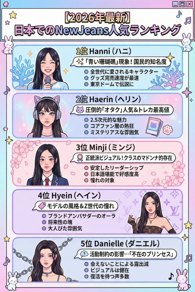 2026年のNewJeansは、法的トラブルによる活動の制約を受けながらも、その実質的な人気は健在です。私が分析したランキングを総括します。